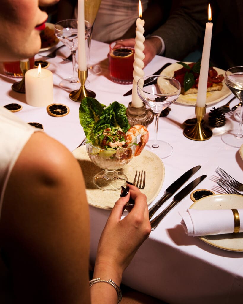 Begin with arrival Prosecco and canapés, then indulge in a luxurious five-course Italian feast, featuring prawn cocktail, handmade pasta, and seafood classics to decadent festive desserts.